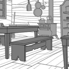 Settlers: For this project I drew layouts to show the home of a pioneer. The style was inspired by TV Show Tangled.